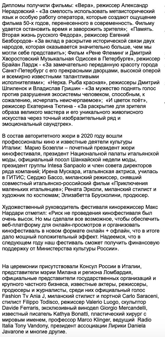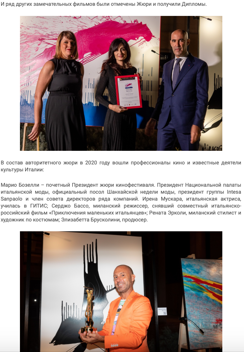 30 сентября в Милане в знаменитом Музее дизайна Триеннале были названы имена победителей III Кинофестиваля.